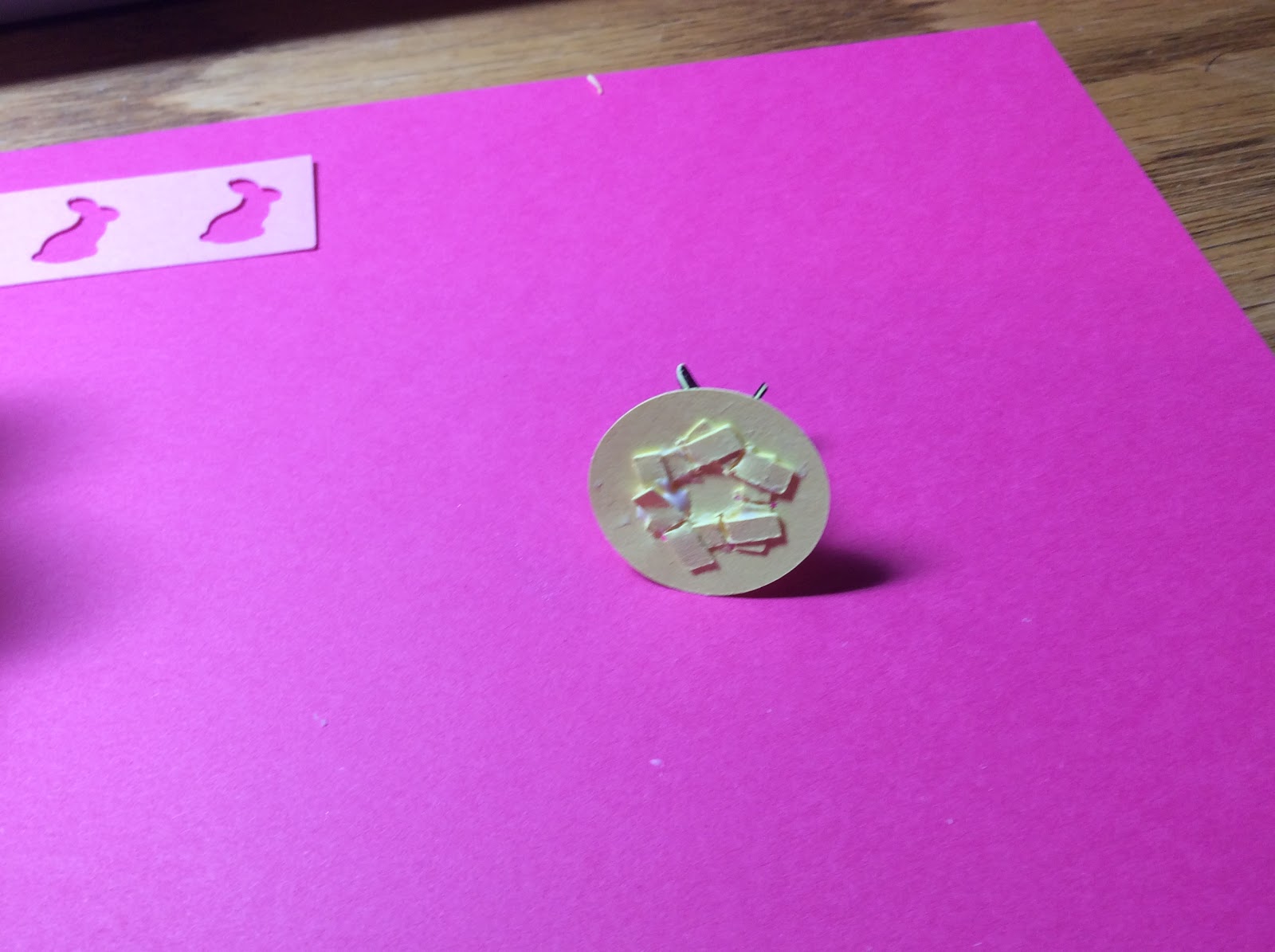 Take the small circle cog and fold up the points. Put glue on each point and insert it into the cone to form the bottom of the flower pot as shown above. I glued another circle inside the pot to add some strength to the bottom.